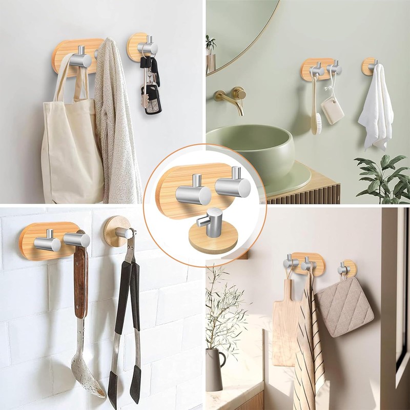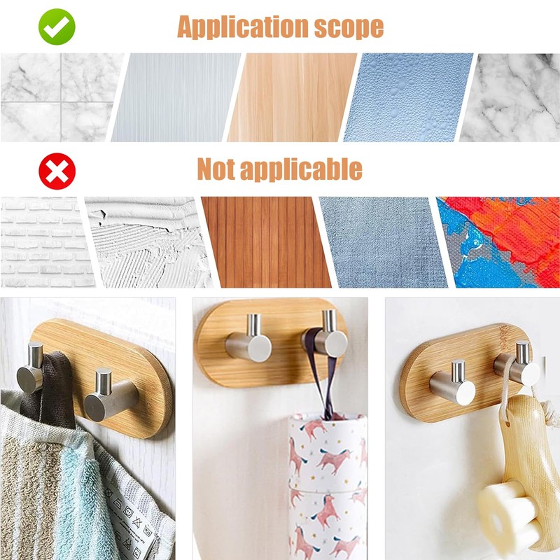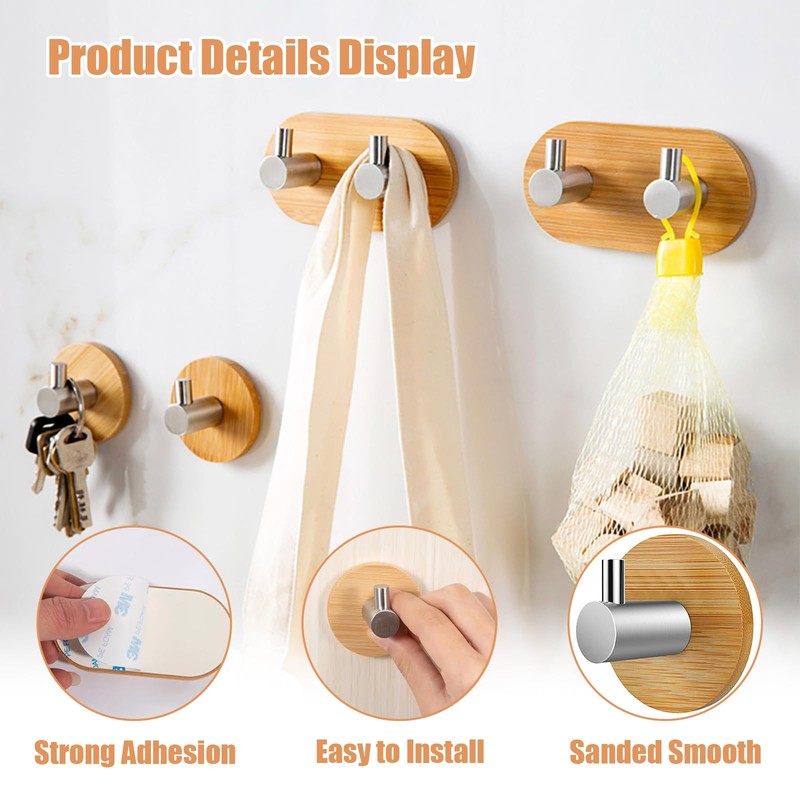 • High-quality materials: the non-marking adhesive hook is made of environmentally friendly bamboo and wood raw materials as well as stainless steel, which is more durable and load-bearing, stable and not easy to fall and rust