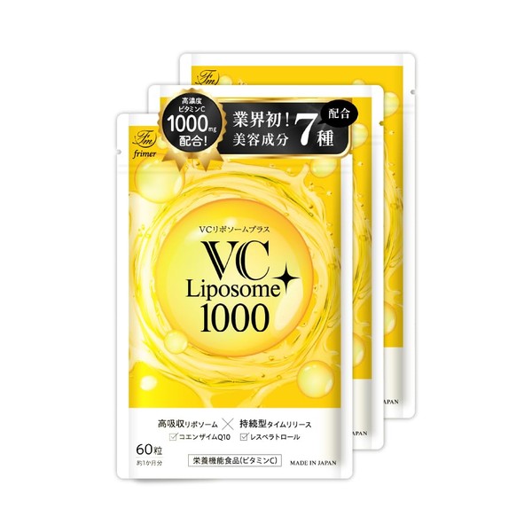 リポソーム ビタミンC 3個セット 高吸収 持続型 VC リポソーム プラス 1ヶ月分 1000 mg サプリ コエンザイム Q10 レスベラトロール αリポ酸 ビタミンP バイオぺリン 酵母エキス タイムリリース 安定型 無添加 VC Liposome plus 1000 国産 フィーミィ FMリポソーム
