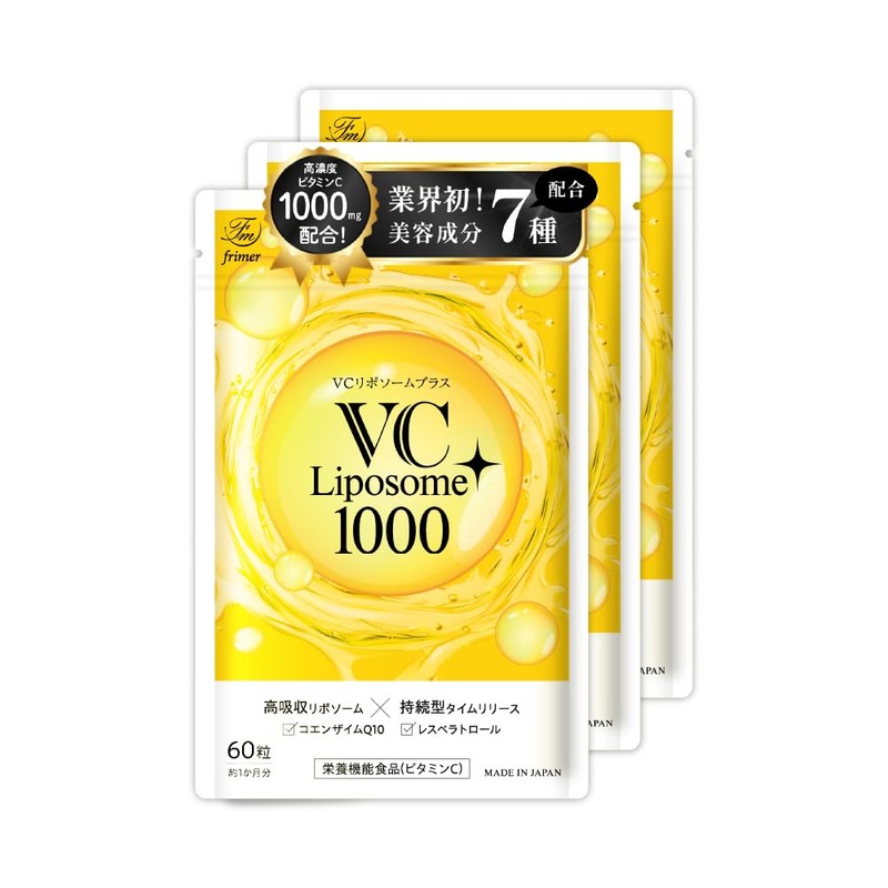 - 【高濃度×高吸収リポソーム×持続型タイムリリース】 フィーミィのVCリポソームプラスは1日2粒で高濃度5種ビタミンC1000mg 高吸収×持続型 業界初!ビタミンCと美容成分配合 安心の無添加品質。不要なものは一切入れず厳しい品質チェックに合格した原材料だけを厳選・ブレンド