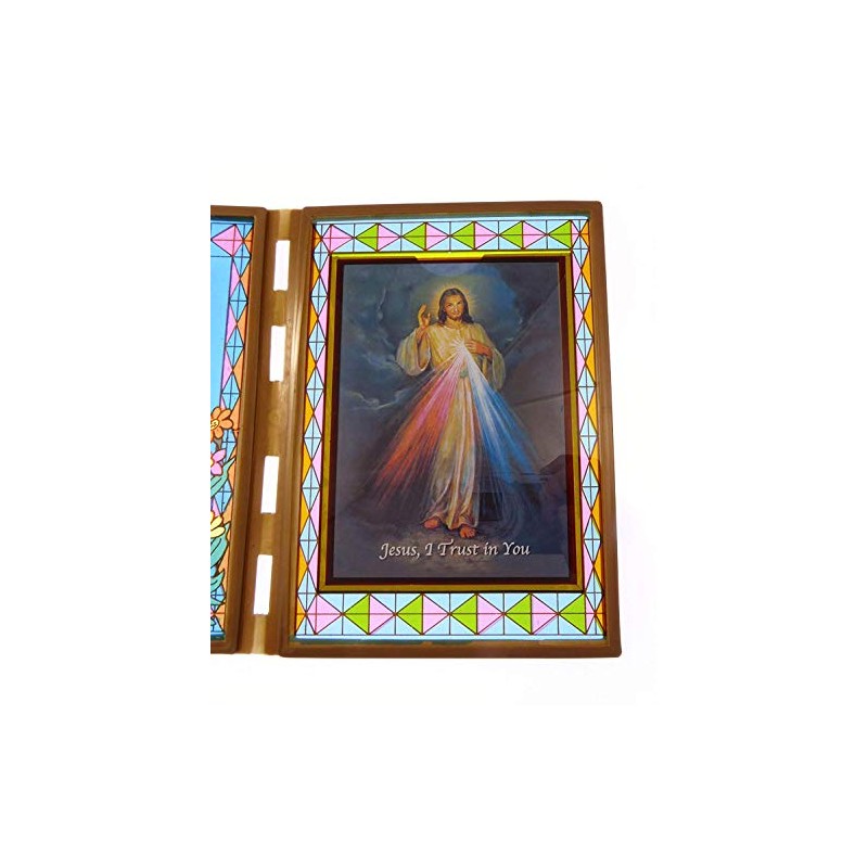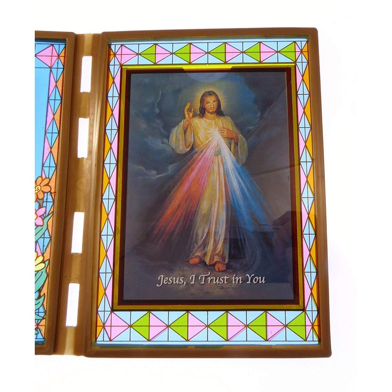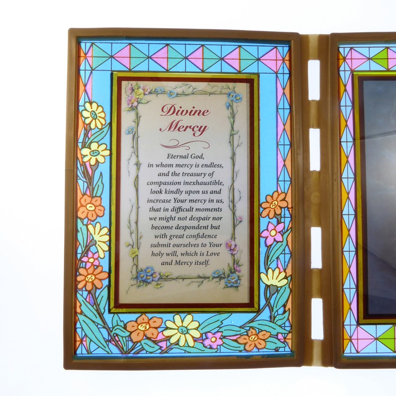 C BC Stained glass double frame with prayer and Divine Mercy Jesus image 18cm