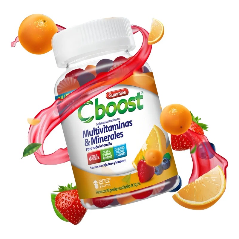 C-Boost – Gomitas Multivitaminas y Minerales es un suplemento en formato de gomitas que combina una selección de vitaminas y minerales para apoyar la nutrición diaria.