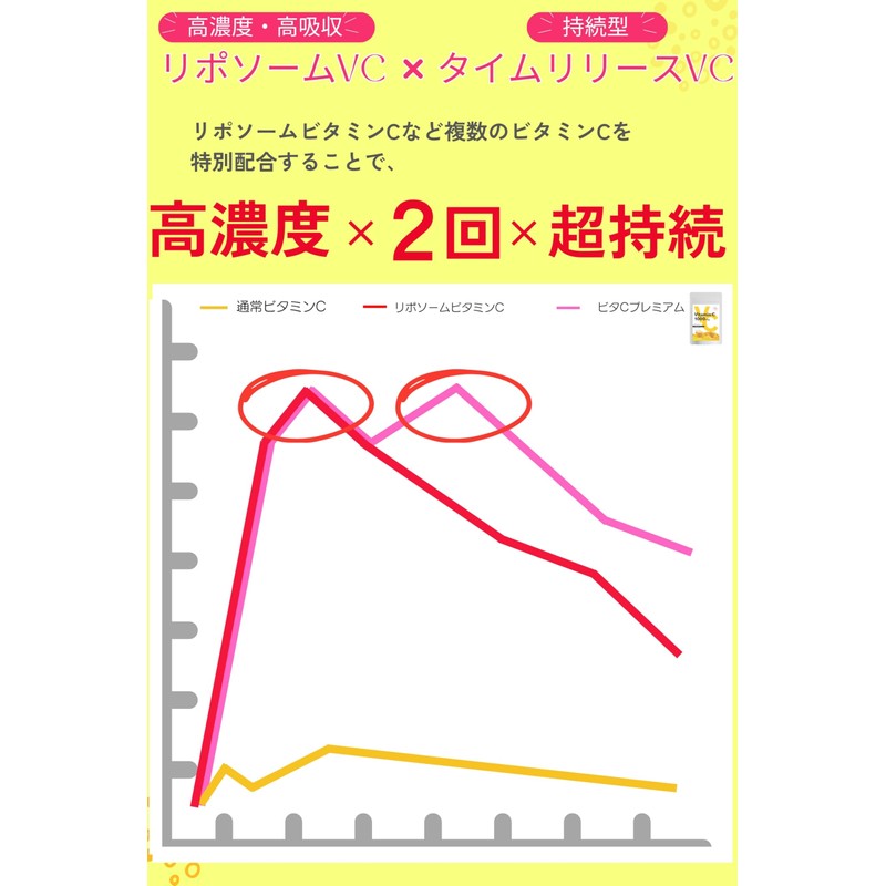 • ✅【ビタミンCサプリメントの決定版】ビタCプレミアムは、効能ビタミンC1,000mgを配合した決定版。タイムリリースビタミンC × リポソームビタミンC × ピュアウェイC 450mgの高配合。「ピュアウェイC」は次世代ビタミンCと呼ばれ、ビタミンを超えたビタミンとして期待されています。PureWay-C(ピュアウェイC)は、「One Innovation Labs」の商標です。