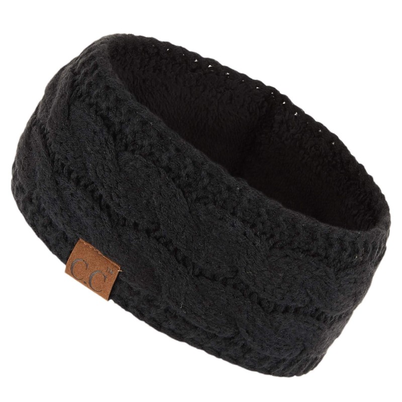 C.C ccbeanie CC Winter Fuzzy Fleece Lined Thick Knitted Headband Headwrap Earwarmer (HW-20) (Black)