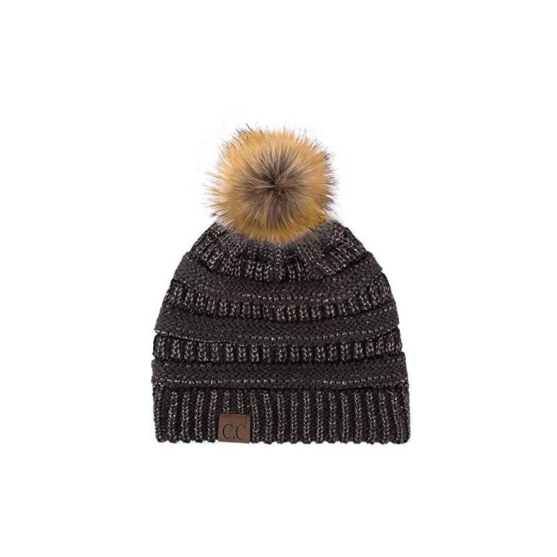 C.C Exclusives Unisex Solid Ribbed Beanie with Pom (HAT-43) (Brown Metallic)