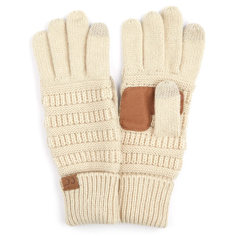 C.C Hatsandscarf CC Exclusives Women Solid Ribbed Glove with Smart Tips (G-20) (Beige)