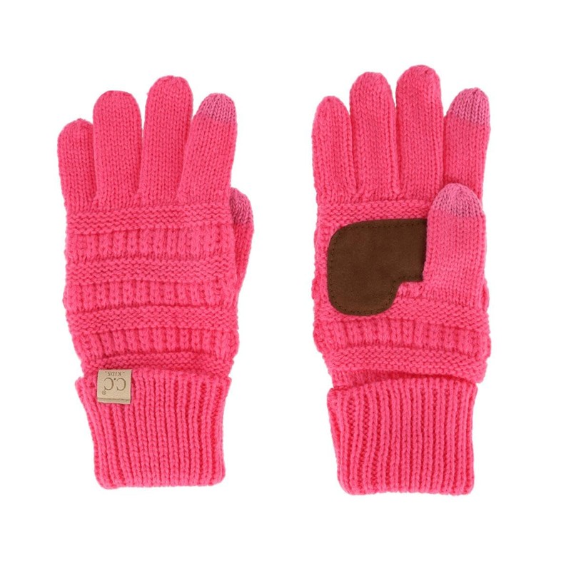 C.C Kids' One Size Fits Most Solid Cable Knit Touchscreen Gloves, Candy Pink