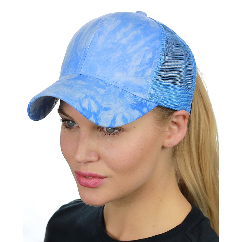 C.C Ponycap - Gorra de béisbol ajustable para moño alto, Tinte azul claro, Talla única