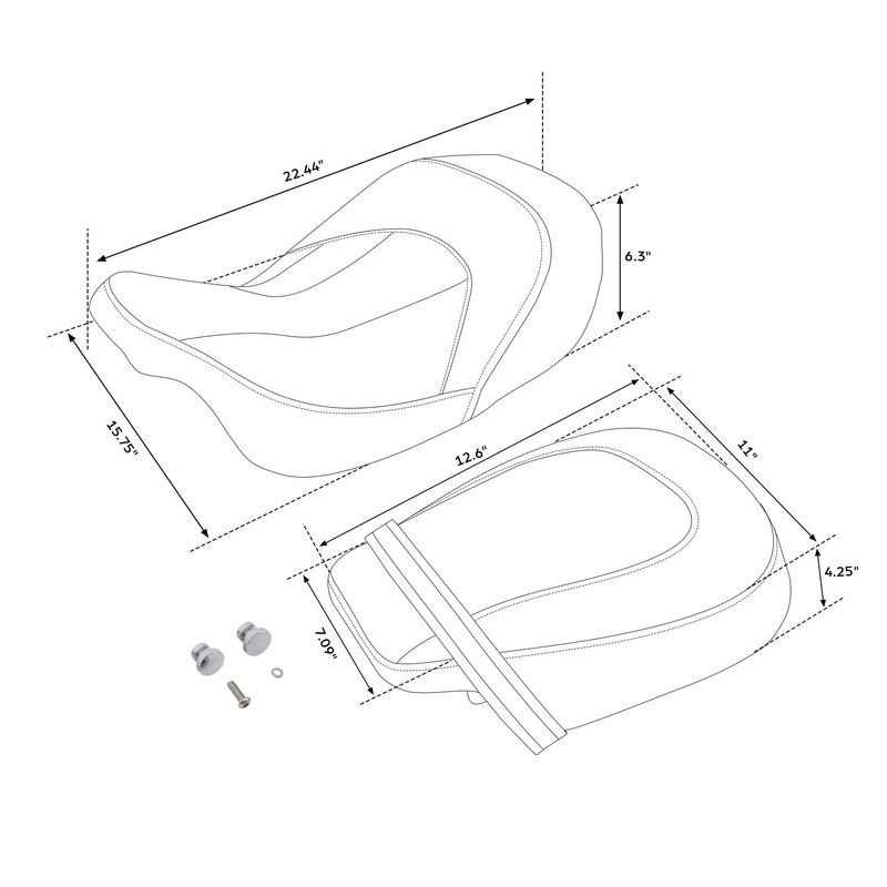 - →【Comfortable seat size】: This Motorcycle seats are ergonomically and Low-Profile designed, Front Seat Width: 15.75". Rear Seat Width: 11" ,Able to helps your feet reach the ground better and Make the riding experience more comfortable for both rider and passenger.