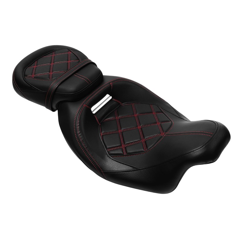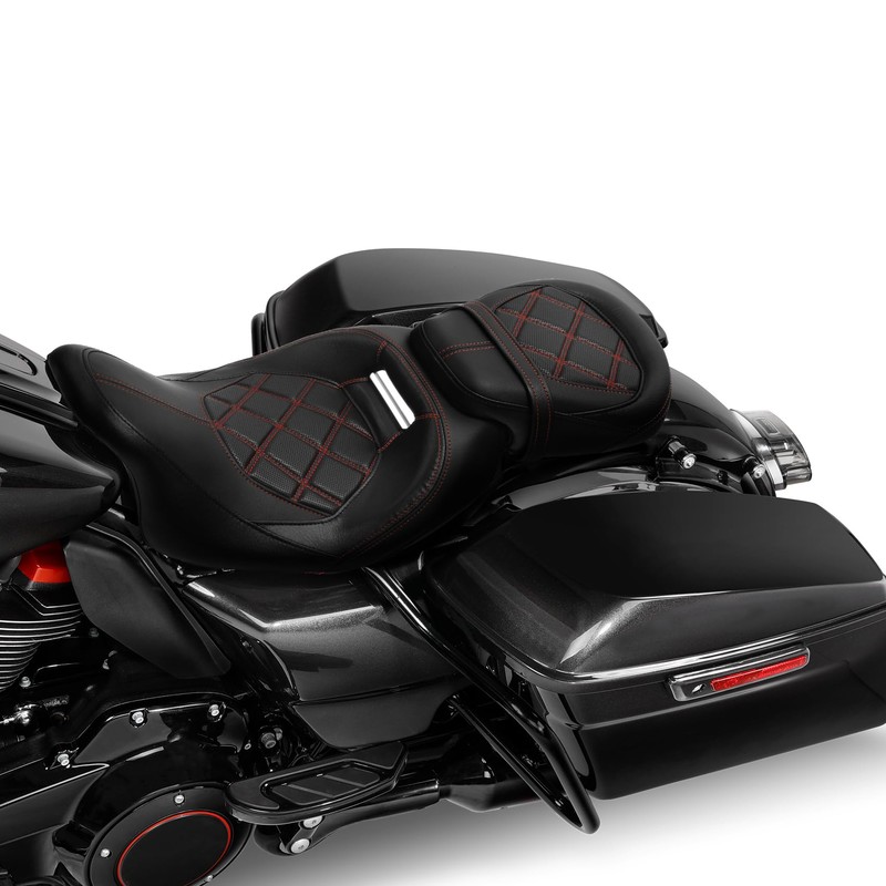 C.C. RIDER Low-Profile Motorcycle 2-UP Seat Fit Harley Davidson 2009-2023 Street Glide FLHX,FLHXSE, Road Glide FLTRX, Road King FLHR, Electra Glide Classic FLHTC, Red Stiting
