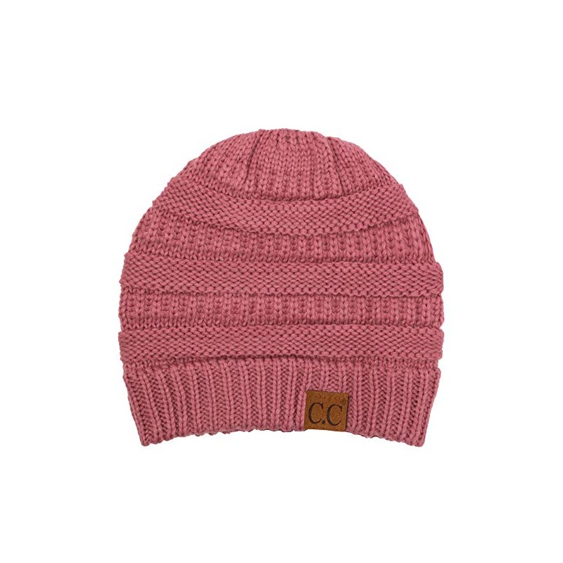 C.C Trendy Warm Chunky Soft Stretch Cable Knit Beanie Skully, Dusty Rose