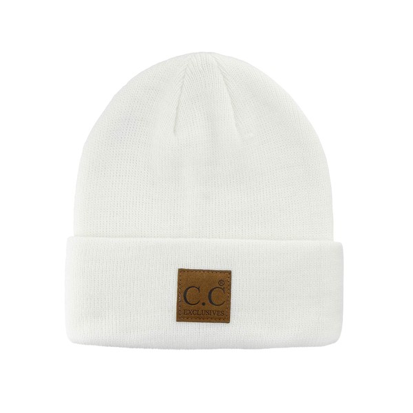 C.C Unisex Plain Cuff Skull Cap Winter Knit Beanie Hat, Ivory