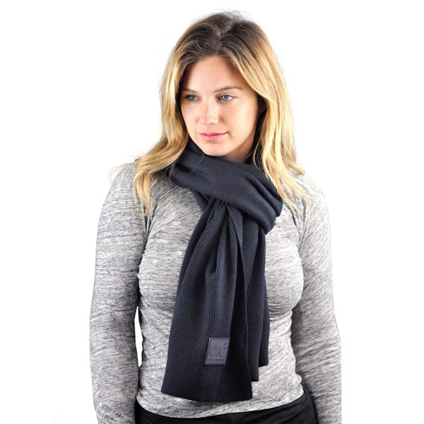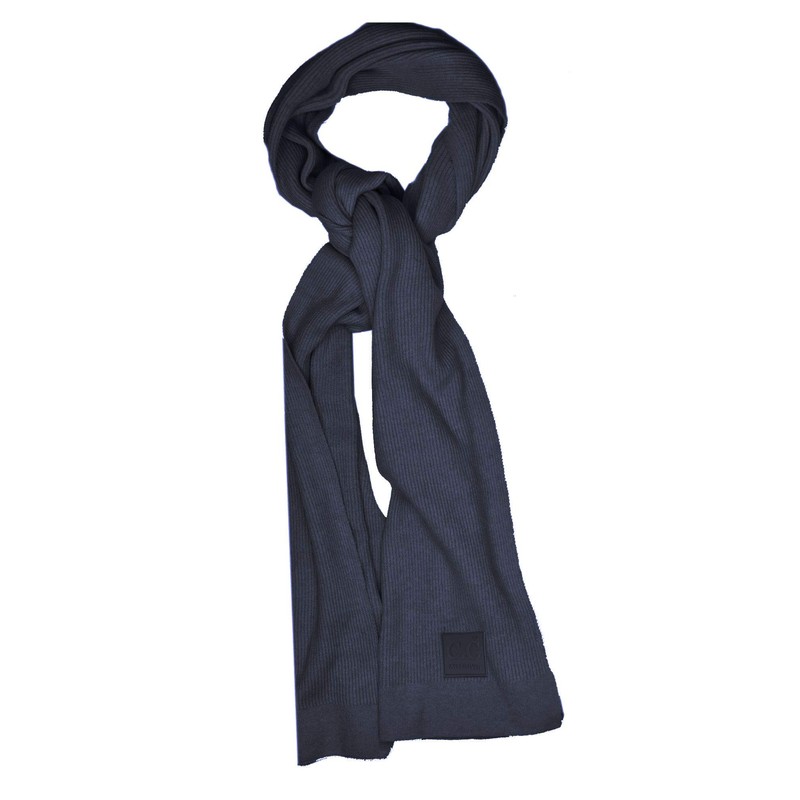 C.C Unisex Winter Thick Ribbed Knit Stretchy Plain Extra Long Scarf Wrap, Navy