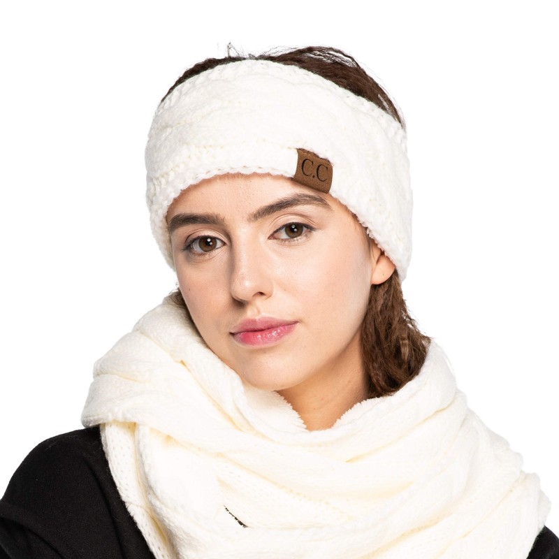 C.C Winter Fuzzy Fleece Lined Thick Knitted Headband Headwrap Earwarmer (HW-20) (Ivory)