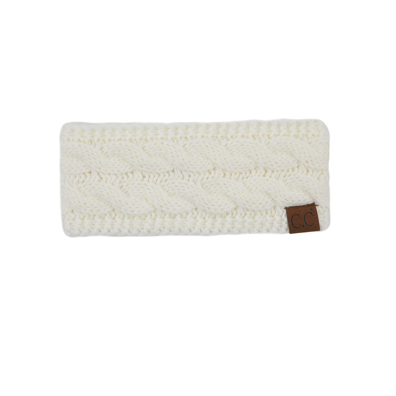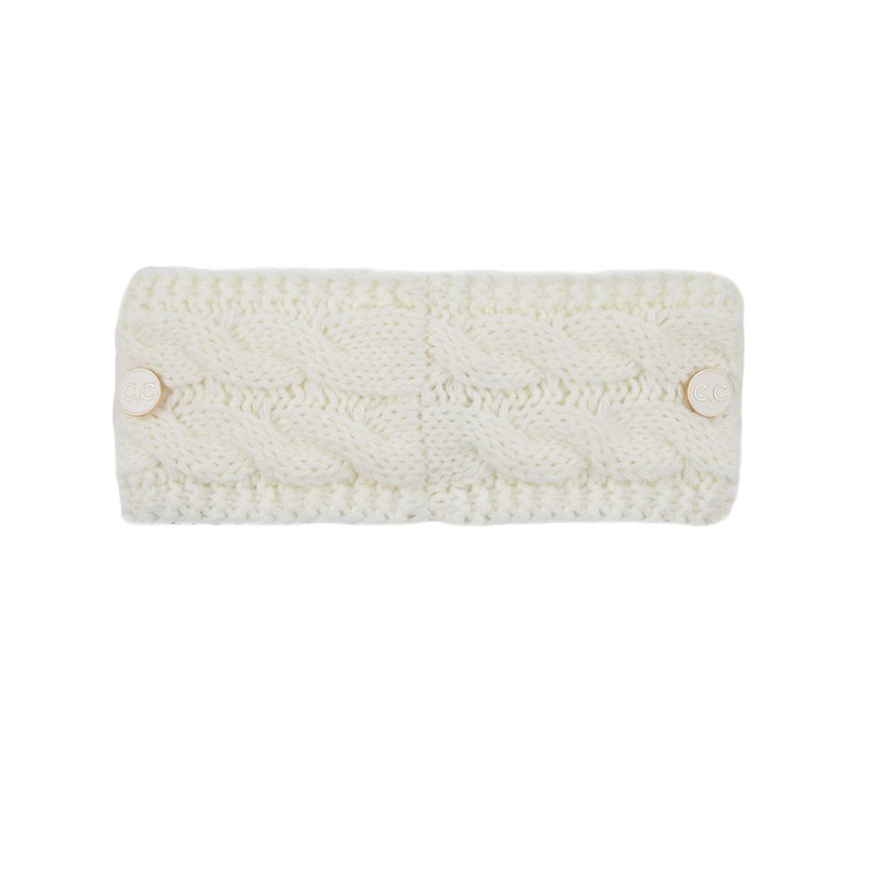 C.C Winter Fuzzy Fleece Lined Thick Knitted Headband Headwrap Epoxy Button for Face Masks (BHW-1) (A Button Ivory)