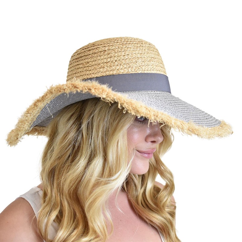 C.C Women's Raffia Paper Woven Fringed Sequin Brim Sun Hat, Gray