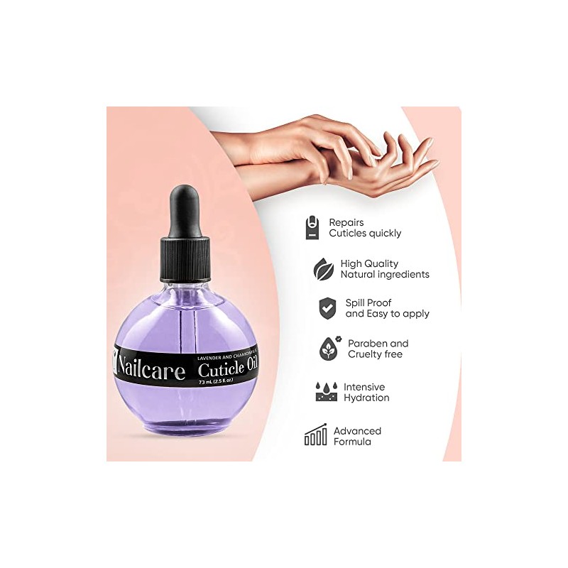 C CARE Cuticle Oil For Nails - Levender and chamomile Nail Oil - Moisturizes and Strengthens Nails and Cuticles - Dropper & Brush included - Large 2.5 oz bottle