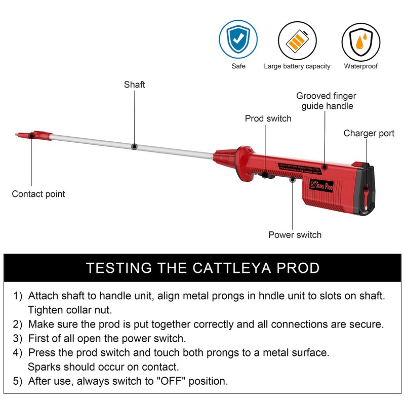 - Durable Build: Made of engineered ABS, this cattle prod offers a promising shockproof, moisture resistance and enhanced durability. Copper contact ensures its durability and avoids the terminal wear and loss of electrical charge.