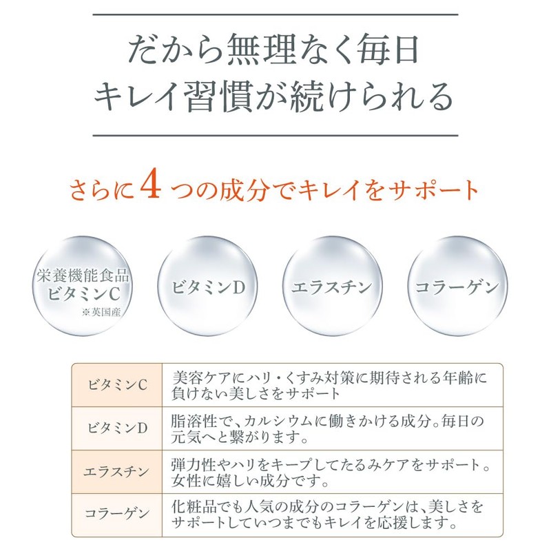 - 【おすすめ理由2】たっぷりの水素に加えて、ビタミンC/ビタミンD3/コラーゲンペプチド/エラスチンを同時配合することで、大人世代の美しく輝く毎日をよりパワフルにサポートします。 レモン風味でさっぱり食べやすく、なんとゼリー1本10gあたり3.7kcalと低カロリー。