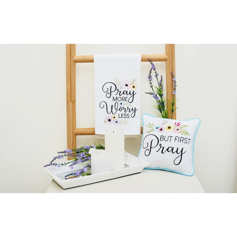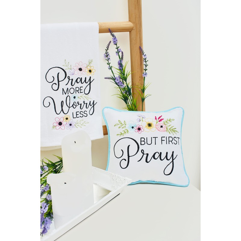 C&F Home But First Pray Embroidered 10 x 10 Inch Throw Pillow Faith Christian God Prayer Decorative Accent Covers for Couch and Bed 10" x 10" White