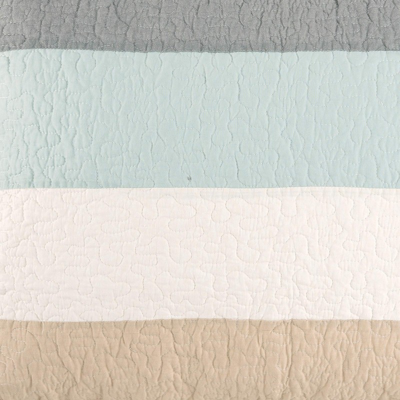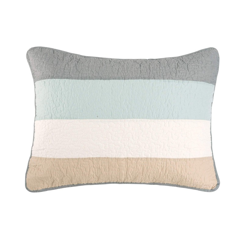- ''' A unique Aegean design comprised of sea turtles, starfish and seashells with a sand, sea glass and aqua color way#||# 100% Cotton Cover and Backing#||# Pre-washed and pre-shrunk#||# Reverse to a simple sand on white lattice pattern#||# Luxury oversized for today's larger mattresses'''