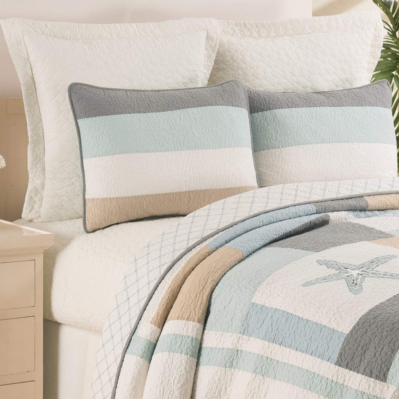 C&F Home Driftwood Shores King 3 Piece Quilt Set Summer Beach Bedding Ocean Themed Coastal Reversible Machine Washable Lightweight Pieced and Embroidered Bedspread Coverlet Comforter King 3 Piece Set