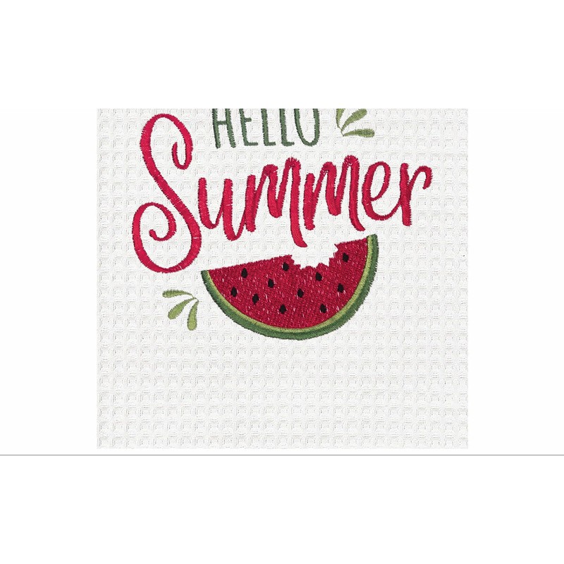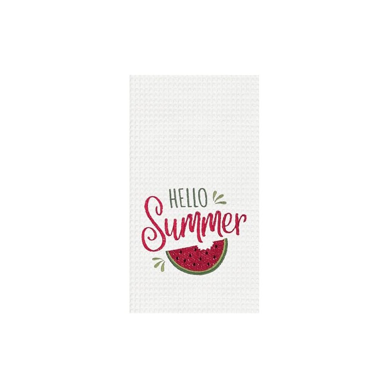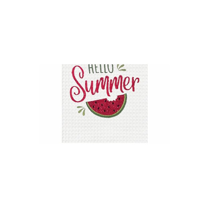 C&F Home Hello Summer Watermelon Bite Embroidered Cotton Waffle Weave Kitchen Towel Red
