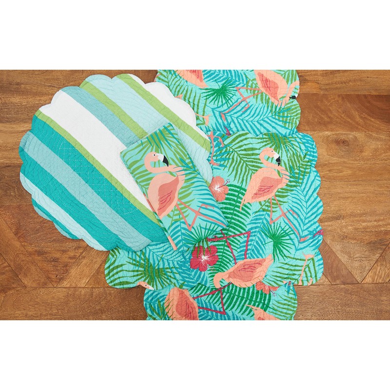 C&F Home Isla Tropics 17'' X 17'' Flamingo Round Quilted Single Cotton Reversible Machine Washable Placemat Round Placemat Green