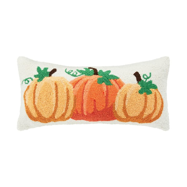 C&F Home Pumpkin Trio Hooked Throw Pillow 12" x 24" White