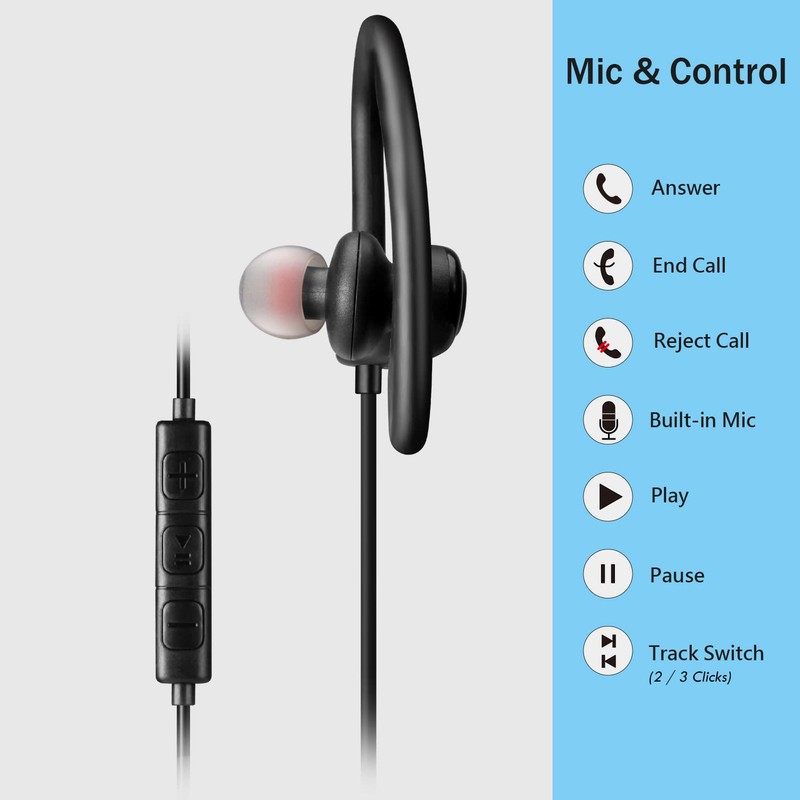 - STAY IN YOUR EAR SECURELY: With the silicone earhook wrapping on your ear securely and gently, you'll get worry-free wearing. No matter how challenging exercise you are doing, the headphones will be in your ear and your music will never be stopped. Yes, wear it for jogging, riding or gym now