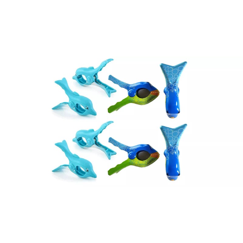 Perfect size and light weight convenient storage or carry, simply clip on the cruise, boat, and chairs. Our clips are super durable and strong rust resistant for years of use. Much easier works well on cruise ship, windy days! Not just to hold towels, but also suitable for clamping and holding your quilt, duvet cover and clothes. To prevent them fall down from the clothes hanger in a windy day. Our clips are multi-purpose, use them on any bag that needs closure including snack bags, pet food and any large bag. Cutest Beach Clips Ever! Each towel clip is colorfully hand decorated. You may even use them for keeping your sarong tied on, you will feel especially sincerity! If you are looking for something different. Here it is. Try it and you will love it! A must beach accessories for the pool and beach chairs, no more running behind towels! Consists of 2x Bubble Fish / 2x Dolphin (8 Ct) - 4 set
