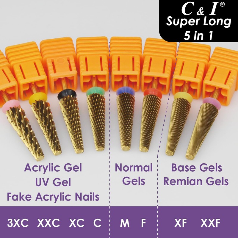 C & I Nail Drill Bit Upgrade 5 in 1 Super Long E-File for Manicure Drill Machine, Special Remove Extension Nails, Fake Acrylic Nails, Nail Gels, Cross Cut Efile for Nail Techs (Double Coarse -XXC)