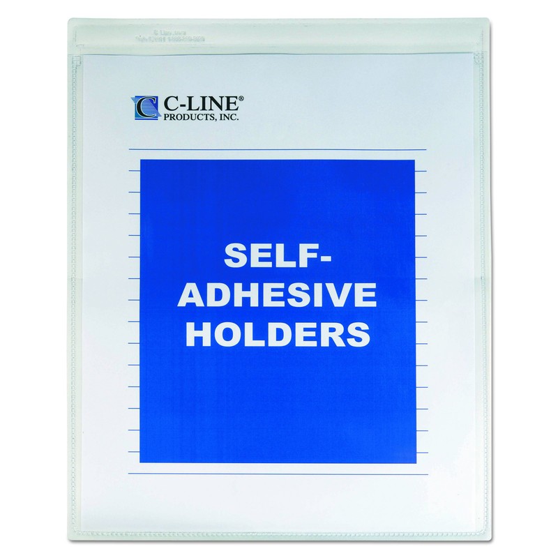 Sticky-backed holders keep your materials at hand. Self-adhesive, poly design allows them to stick wherever they are needed. Clear, heavy, top-loading holders with nonrip seams attach to any dry, clean, flat surface. They are ideal for convenient storage of instructions or service records on office equipment. Clear front allows easy viewing of contents.