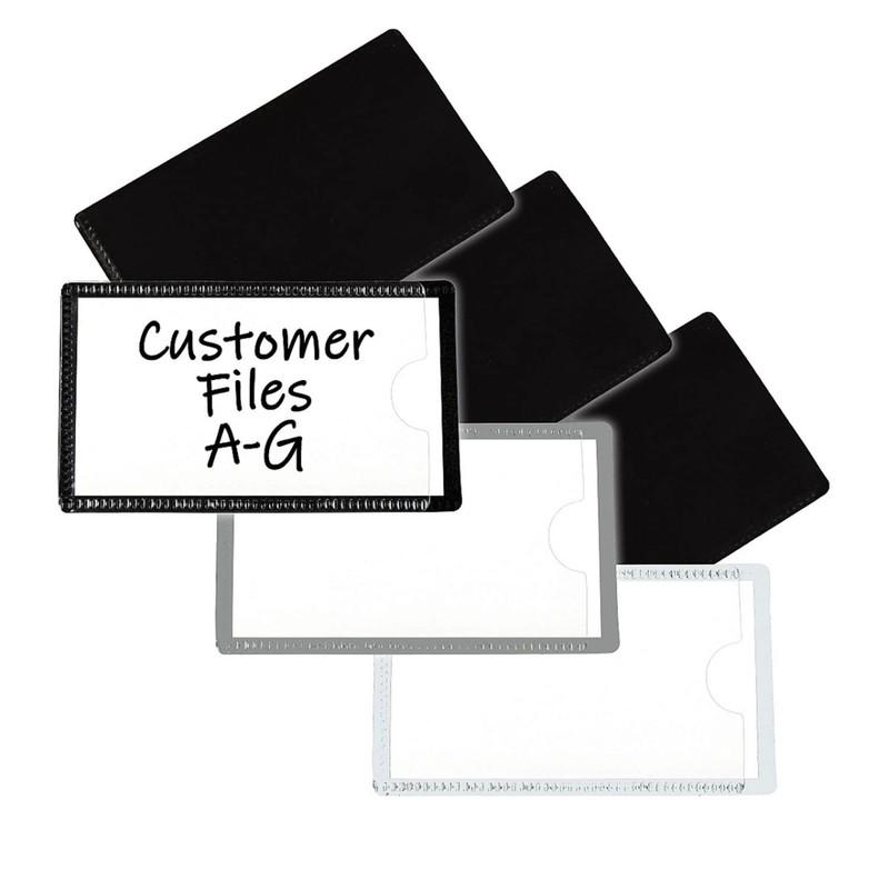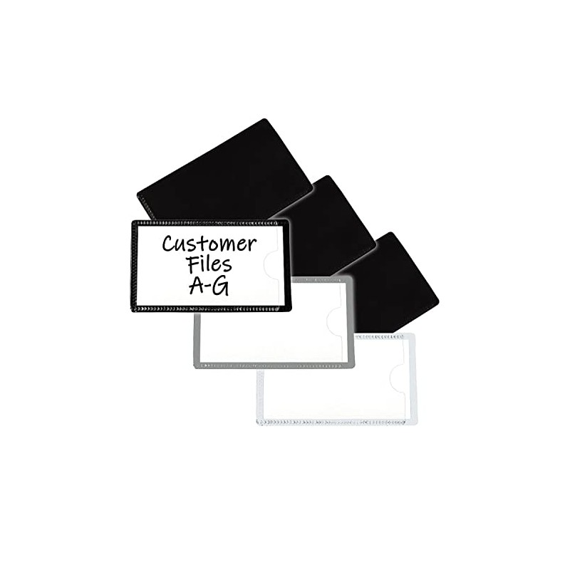 • Hand write or use a label maker to customize inlcuded cardstock inserts.