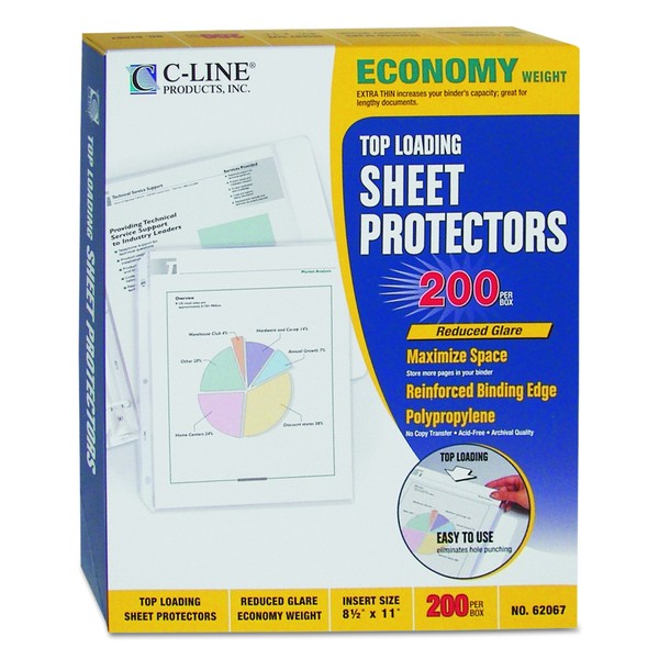 C-Line Top Loading Economy Weight Poly Sheet Protectors, Reduced Glare, 8.5 x 11 Inches, 200 per Box (62067)