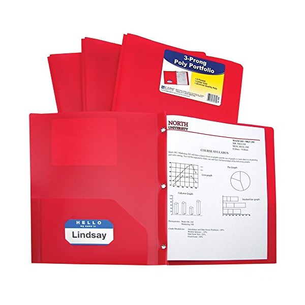 C-Line Two-Pocket Heavyweight Poly Portfolio with Prongs, For Letter Size Papers, Includes Business Card Slot, 1 Case of 25 Portfolios, Red (33964-25)
