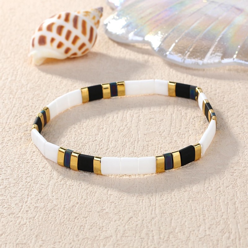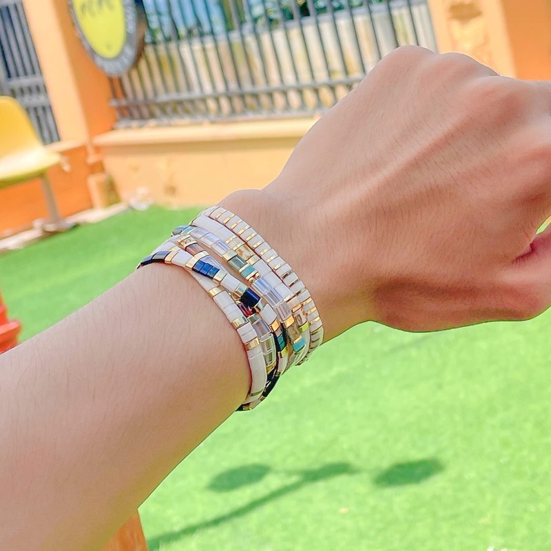 - Features --- Vibrant tila bracelets can add flair to your outfit, perfect for stacking the same bracelet or seed bead bracelets. The flat shape will not burden your wrist, lightweight and low profile yet charming.