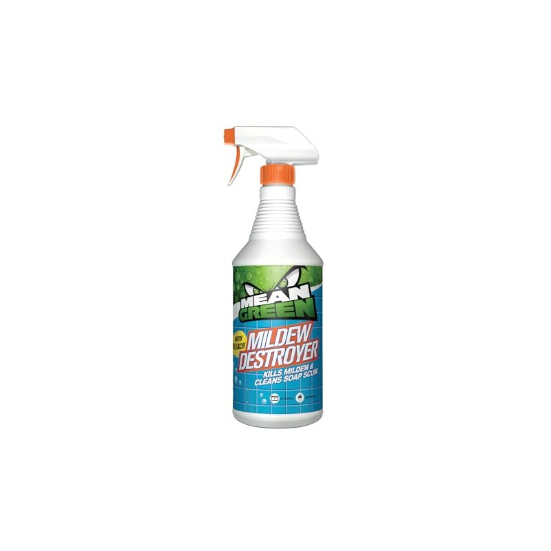 - Mean Green Mildew Destroyer with Bleach. It kills mildew & cleans soap scum. For use in home, kitchen and bathroom.