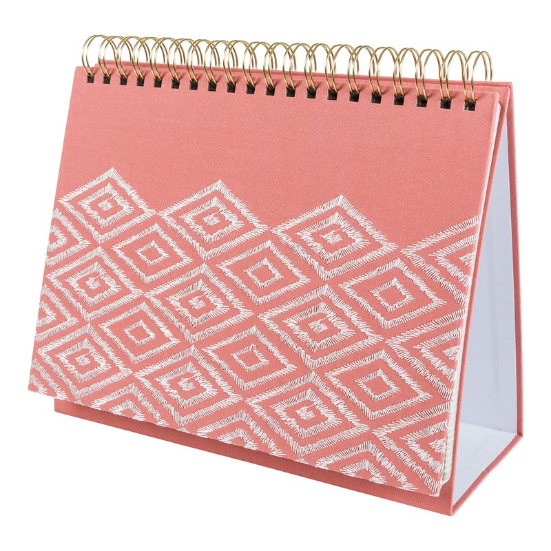 - Made with an attractive modern geometric design and a bright peach color, this small desktop calendar will look great in your work or home office.