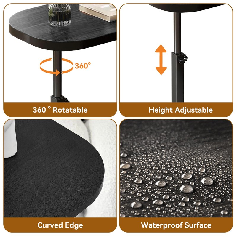 C Shaped Side Table,Adjustable Height C Table End Table for Couch,360°Swivel Couch Side Tables Slide Laptop Desk for Sofa/Bed/Bathtub/Rotating Tabletop (Black)