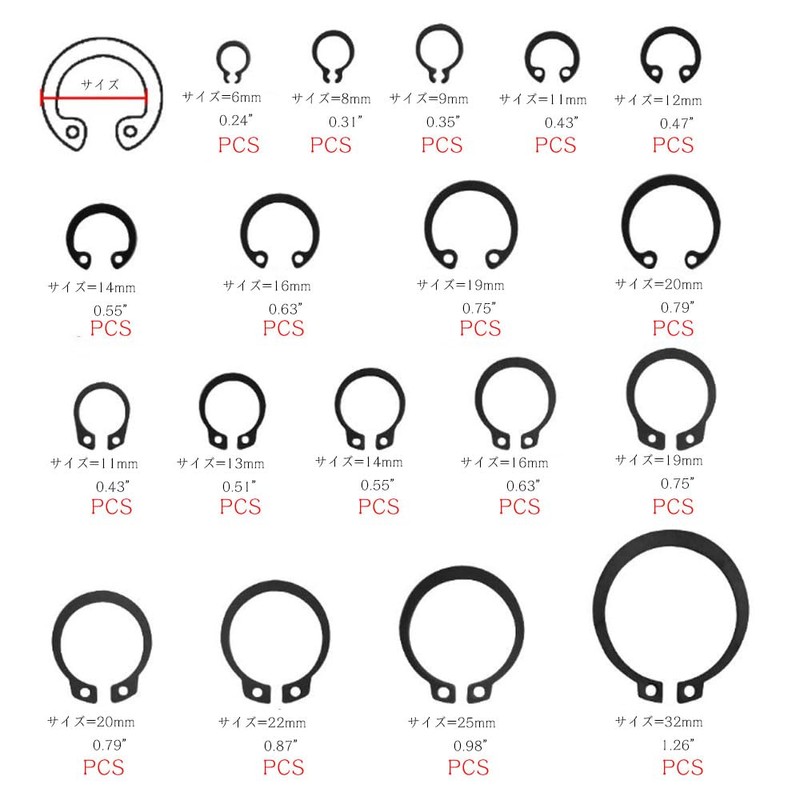 • Set Contents: Approximately 225 C-shaped snap rings. Color: Black Material: Carbon Steel Size:3mm(20pcs),4mm(10pcs),5mm(15pcs),6mm(25pcs),8mm(15pcs),9mm(20pcs),11mm(15pcs),12mm(15pcs),13mm(25pcs),14mm(15pcs),16mm(20pcs),19mm(25pcs),25pcs),225pcs),225pcs),225pcs),225pcs),225pcs),225pcs),225pcs),225pcs),225pcs),225pcs. mm(15pcs) 26mm(15pcs), 28mm(10pcs), 32mm(5pcs)