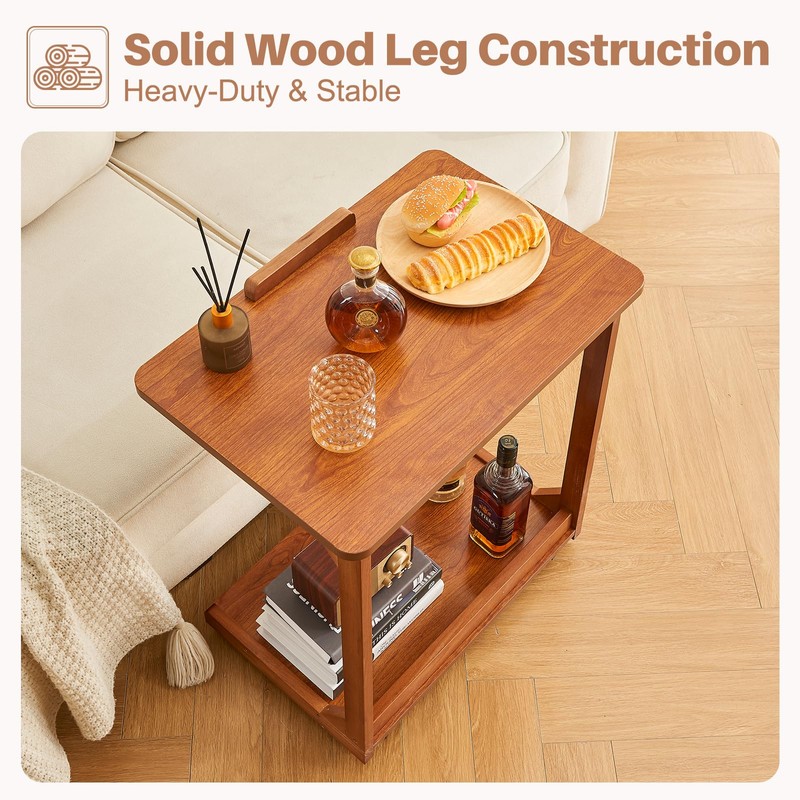 - Modern Style: C-shape design with warm wood tones fits any sofa-side, bedside, or armchair corner. Compact footprint (15.7''D x 23.6''W) seamlessly blends as a narrow end table, little TV tray, or nightstand, elevating living rooms, bedrooms, or offices