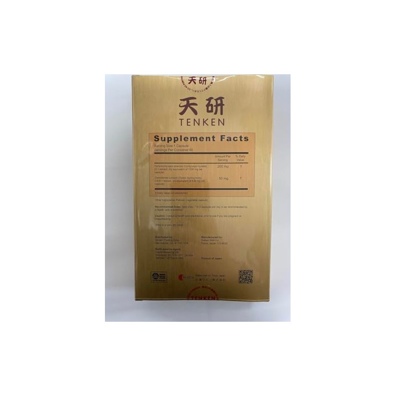 - Every capsule of [Tenken] C. Sinensis contains 200mg of Cordyceps Sinensis (mycelium extract) and an additional 50mg of red Reishi, Ganoderma Lucidum, (fruiting body extract) to enhance absorption, thus maximizing the effects of [Tenken] C. Sinensis.