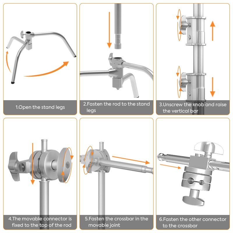 • Widely Used: 2 Metal Grip Heads with 4 Holes are compatible with various equipment. C-stand serves long-lasting durability for supporting heavy-duty photographic gears like umbrella, strobe, monolight, reflector, softbox, and more. Can be used in the studio, outdoors, and in the field. Meet various photo and video shooting requests.