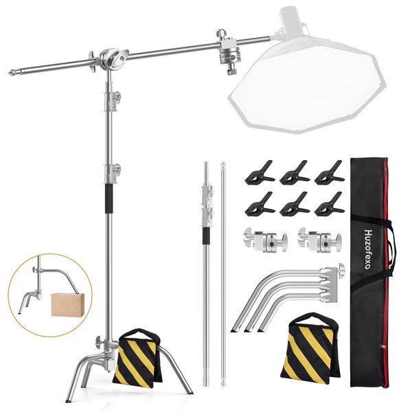 C Stand with Boom Arm 10.8ft/330cm, Huzofexo Stainless Steel Photography Ligh...