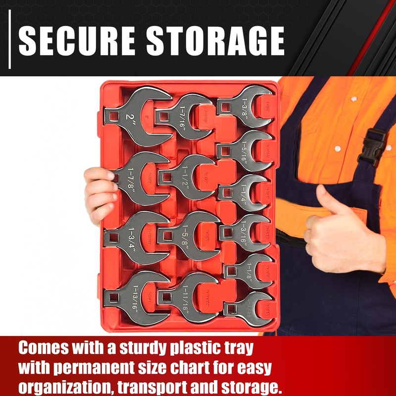 • 【Package Include】14-Piece 1/2" Drive Jumbo Crowfoot Wrench Set: 1-1/16", 1-1/8", 1-3/16", 1-1/4", 1-5/16", 1-3/8", 1-7/16", 1-1/2", 1-5/8", 1-11/16", 1-3/4", 1-13/16", 1-7/8", 2".
