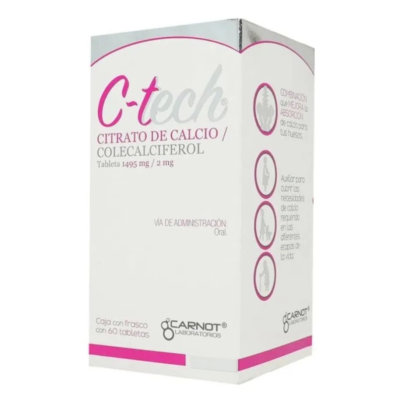 C-tech Citrato De Calcio Con Colecalciferol 60 Tabletas Sabor Sin Sabor