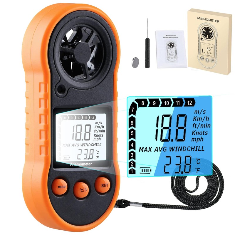 - Easy to use: Just start the anemometer and use it immediately. Only 3 buttons, one-handed operation. Comes with a silicone cover and strap for a secure fit