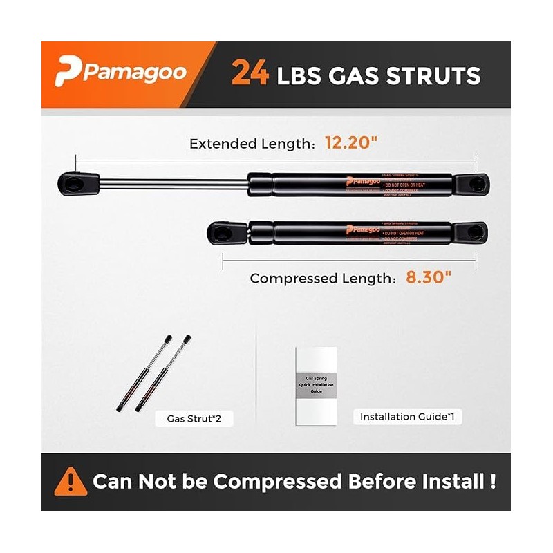 - [Parameter] Extended Length: 12.2", Compressed Length: 8.3". Include 1 Pair Gas Struts. It is recommended to use a pair on both sides at the same time