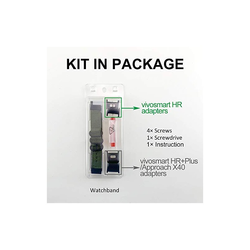 C2D JOY Canvas Nylon Strap Compatible for Garmin vivosmart HR/HR+ Plus Activity Tracker and Approach X40 Replacement band with Adapters - Black