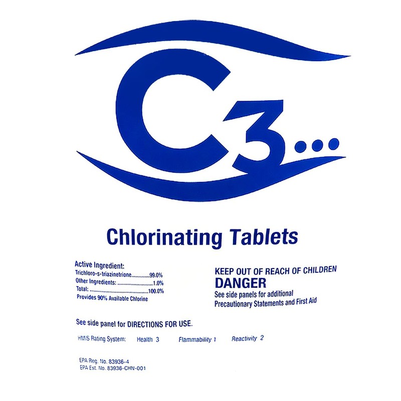 C3... 1" Stabilized Chlorine Tablets for Swimming Pool and Spa | Individually Wrapped | Slow Dissolving | 25 lbs
